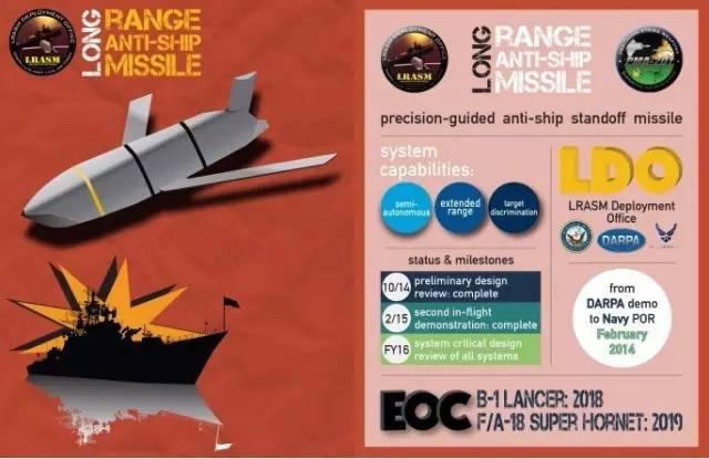 美海軍航空系統司令部對AGM-158C“遠程反艦導彈”的介紹,可見“LRASM部署辦公室”以DARPA為核心,美海軍和空軍均有參與;該項目是在2014年2月按照美國防部的指令由DARPA的演示驗證項目轉為美海軍的在冊項目,此后DARPA的演示驗證工作仍繼續進行。成立LDO之后,DARPA繼續提供了轉化支持(美海軍航空系統司令部圖片)