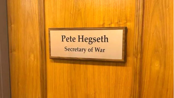 特朗普簽署行政令當(dāng)天,國(guó)防部立刻在五角大樓更換國(guó)防部長(zhǎng)、國(guó)防部長(zhǎng)辦公室等門(mén)牌,變?yōu)椤皯?zhàn)爭(zhēng)部長(zhǎng)”“戰(zhàn)爭(zhēng)部長(zhǎng)辦公室”等。美國(guó)國(guó)防部網(wǎng)站和社交媒體賬號(hào)也都改名為“戰(zhàn)爭(zhēng)部”。(來(lái)源:新華社 記者:施春)